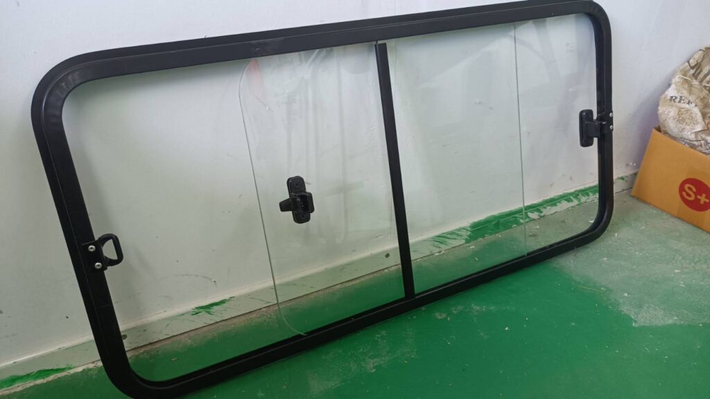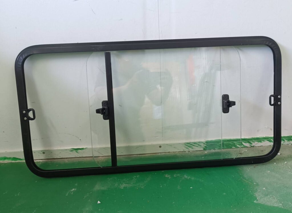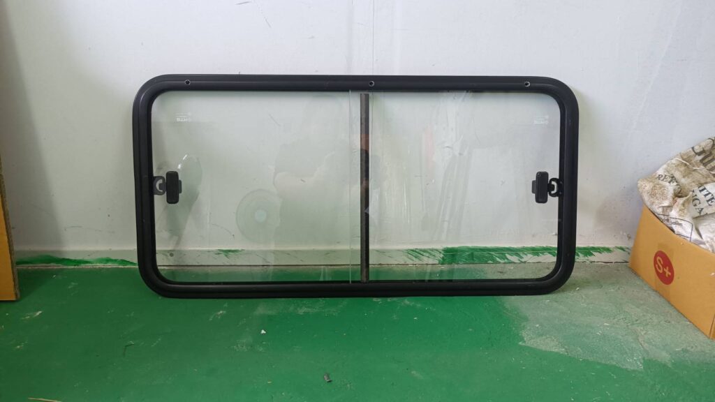 หน้าต่างบานเลื่อน ขอบเฟรมสีดำ Leave a Comment / กระจกบานเลื่อน / By Admin หน้าต่างบานเลื่อน ขอบเฟรมสีดำ ขนาด 80×40 เซนติเมตร กระจกนิรภัย เจาะรูน้ำทิ้งแยกฝั่งซ้าย-ขวา