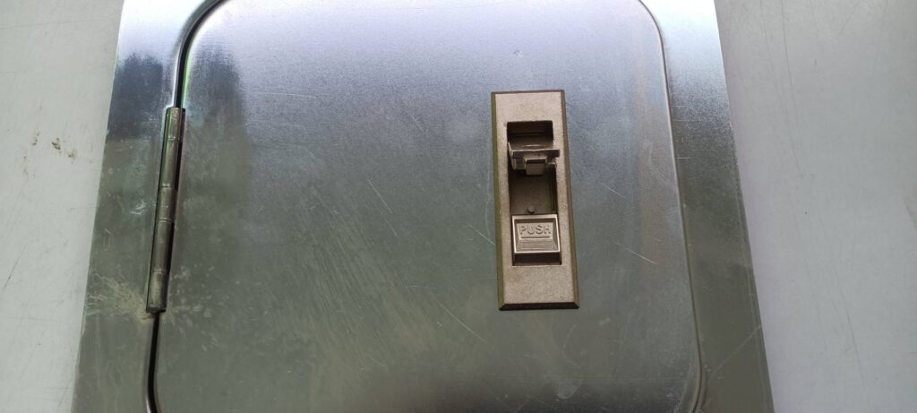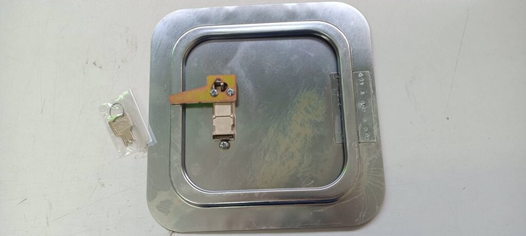 ฝาถังน้ำมันใหญ่พร้อมกุญแจล็อก วัสดุเป็นเหล็กชุบกันสนิม ขนาด 24*24 เซนติเมตร เหมาะสำหรับใช้กับรถบรรทุก 6 ล้อ 10 ล้อ หรือดัดแปลงการใช้งานตามความเหมาะสม